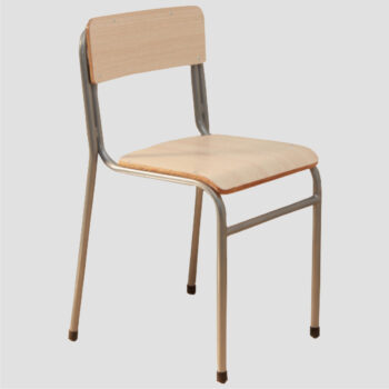 Chaise semi-métallique, assise et dossier en contreplaqué, épaisseur 9 mm Assise (L x P) : 36 x 36 cm – Hauteur de l’assise/sol : 44 cm